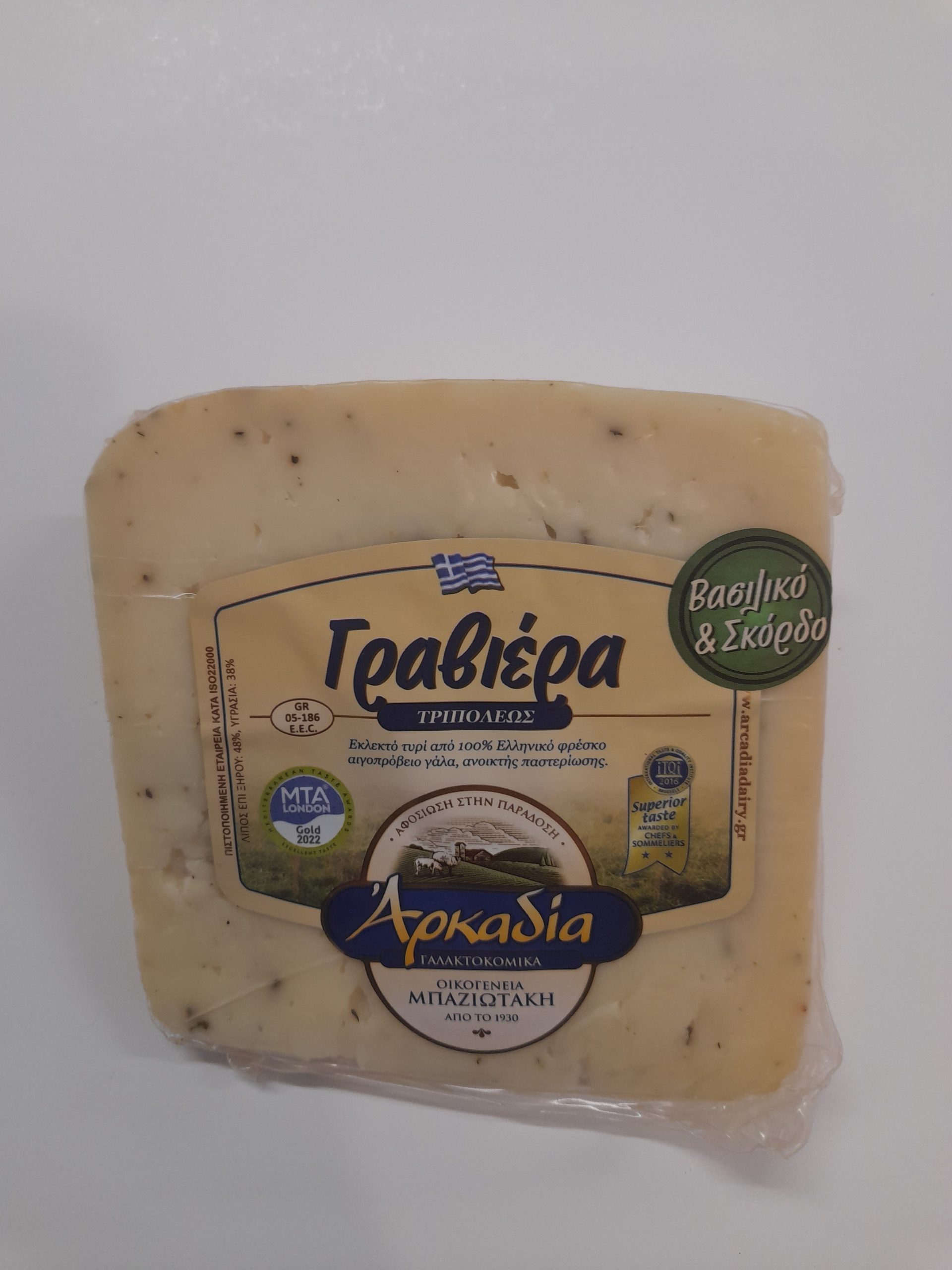Γραβιέρα με βασιλικό κ σκόρδο Τριπόλεως ‘Αρκαδία’ (το προϊόν ζυγίζεται) Τιμή συσκ. περίπου