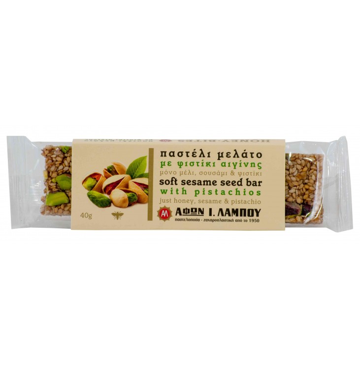 Το μαλακό παστέλι από φυσικό σουσάμι και μέλι με φιστίκι Αιγίνης.